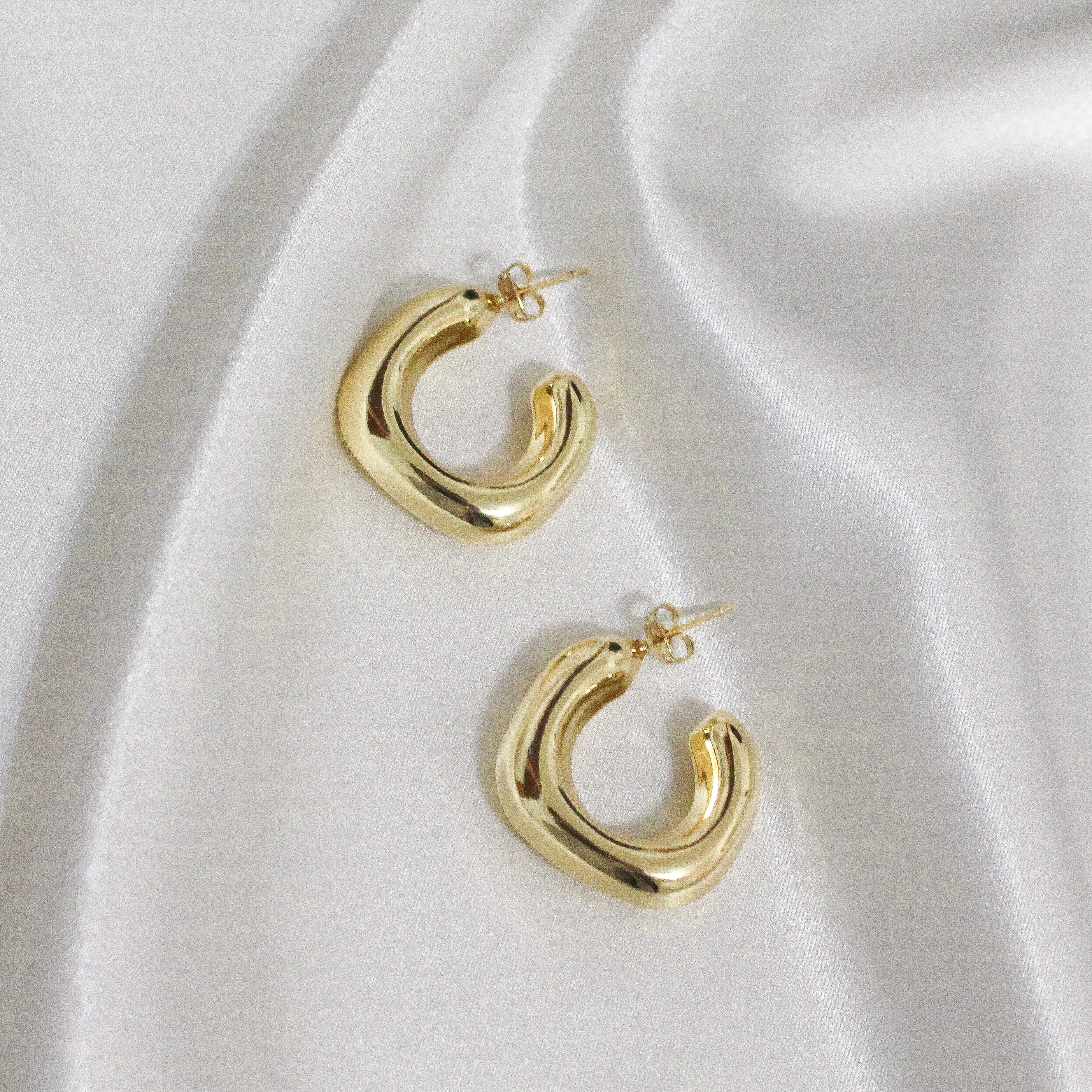 Bold, shiny, and ready to steal the spotlight. These chunky gold hoops bring major main character energy with their smooth curves and eye-catching shine. Lightweight enough for all-day wear, but statement enough to turn heads. Basically, your new favorite pair.