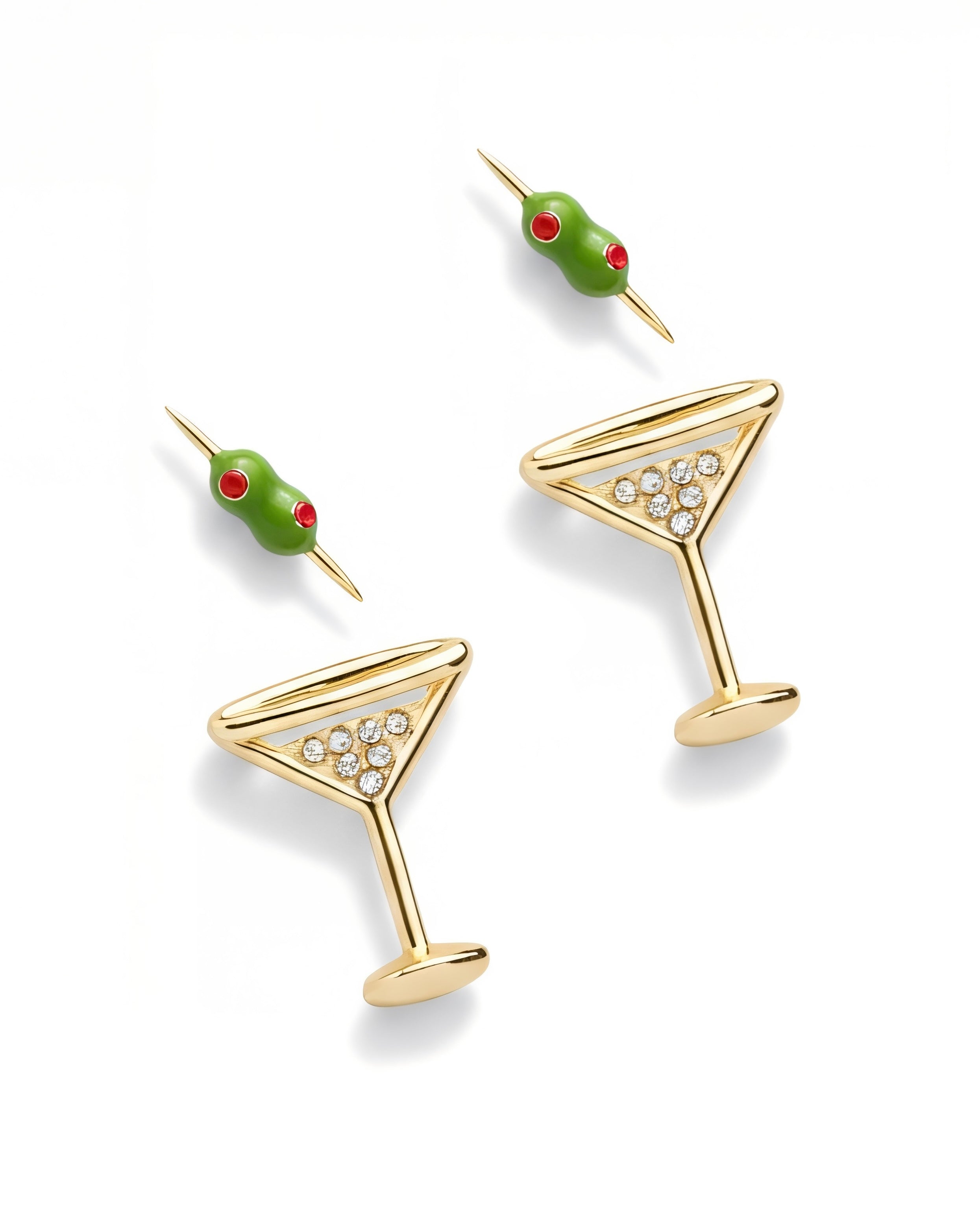 Meet our GNO Martini Studs: the tiny, playful statement earrings you'll wear to every girls' night out. Designed with an 18k gold plated finish, these mini martini glass studs add a subtle sparkle that instantly dresses up your look. Lightweight, every-day approved, and perfect for cheers-ing with your favorite people.