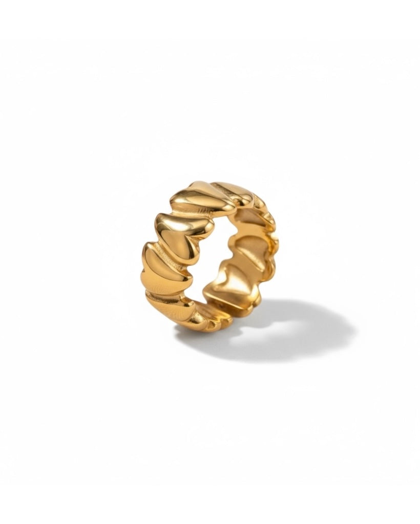 Love at first sight. This bold gold ring stacks chunky hearts for a look that's sweet, statement-making, and seriously fun.