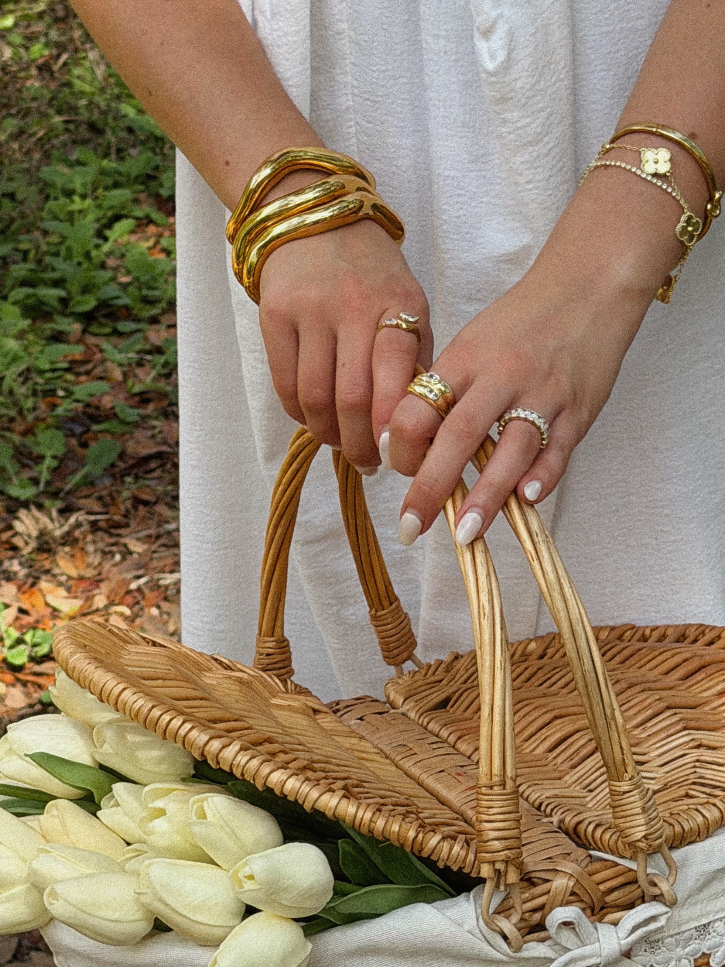 Sculptural, statement-making, and built to last- the Sculpted Flow Bracelet is a bold twist on a classic cuff. With its fluid, wave-like silhouette and high-shine finish, this piece brings modern edge and luxe minimalism to any stack.