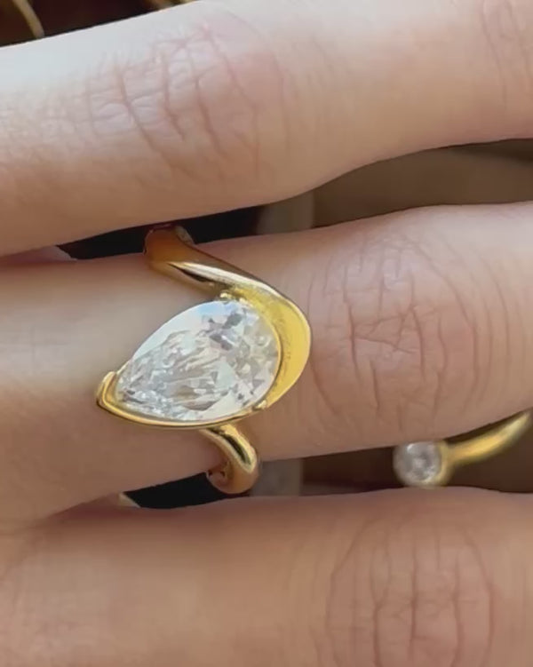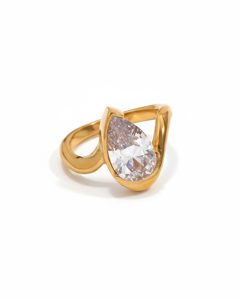 A little sparkle goes a long way. This ring wraps a chunky gold band around a bold teardrop-cut atone for a look that's effortless but still eye-catching. Perfect for stacking, dressing up, or just making your everyday outfit pop.